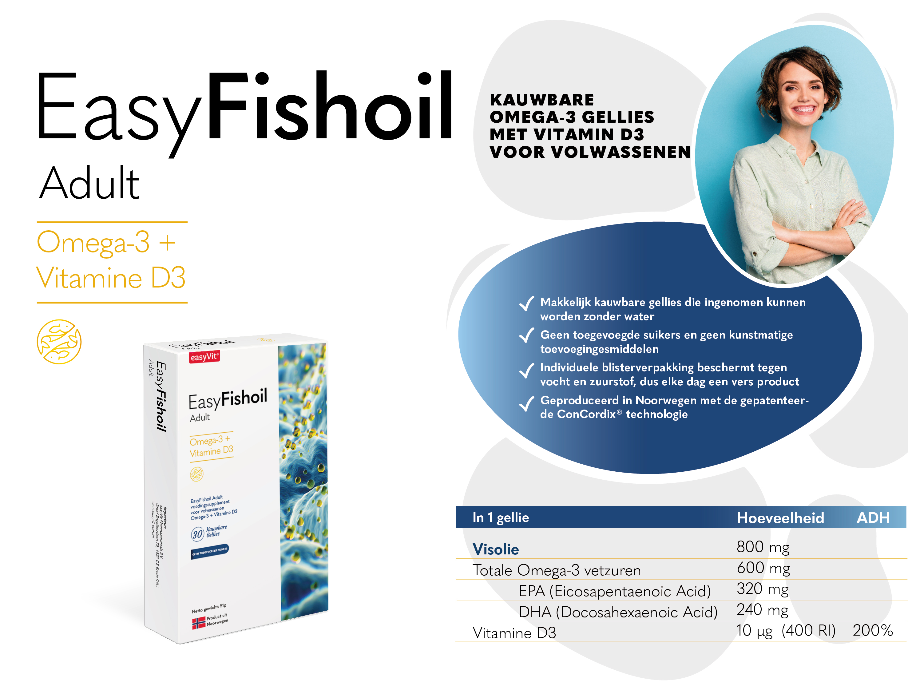De aanbevolen dosering niet overschrijden. Voedingssupplementen zijn geen vervanging voor een gevarieerd dieet en een gezonde levensstijl. Raadpleeg uw zorgverlener als u zwanger bent, borstvoeding geeft of medicijnen gebruikt. Bewaar het product buiten het zicht en bereik van kinderen en op een koele, droge plaats op kamertemperatuur (onder 25C). Gebruik het product niet als de verpakking beschadigd is. Allergenen: Bevat visolie.